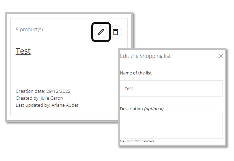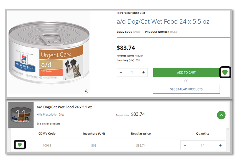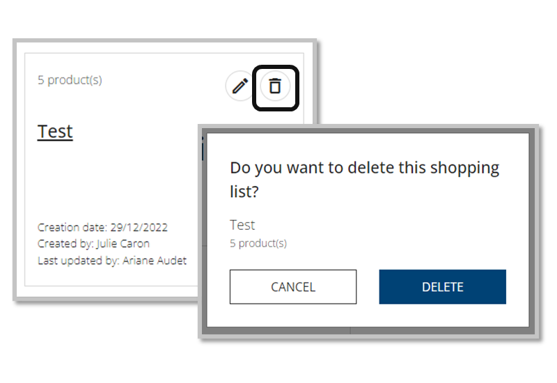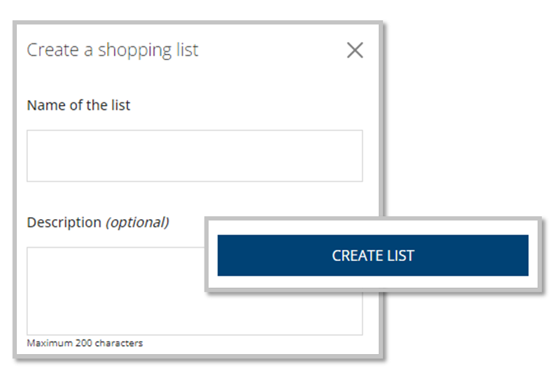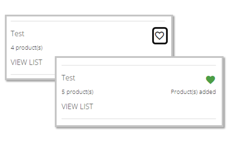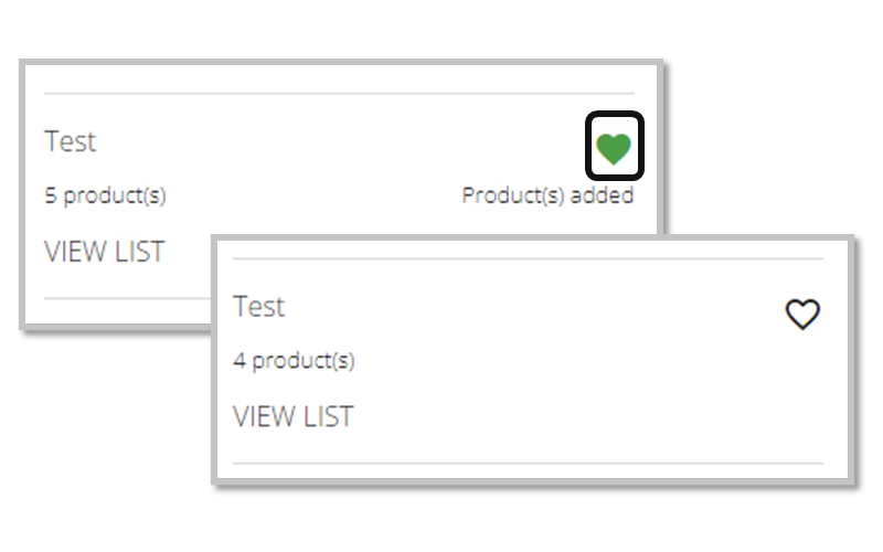 Please note: the same product (or even a whole cart) can be linked to several shopping lists: simply click on the heart icon in each list where you want to add the product (or cart).