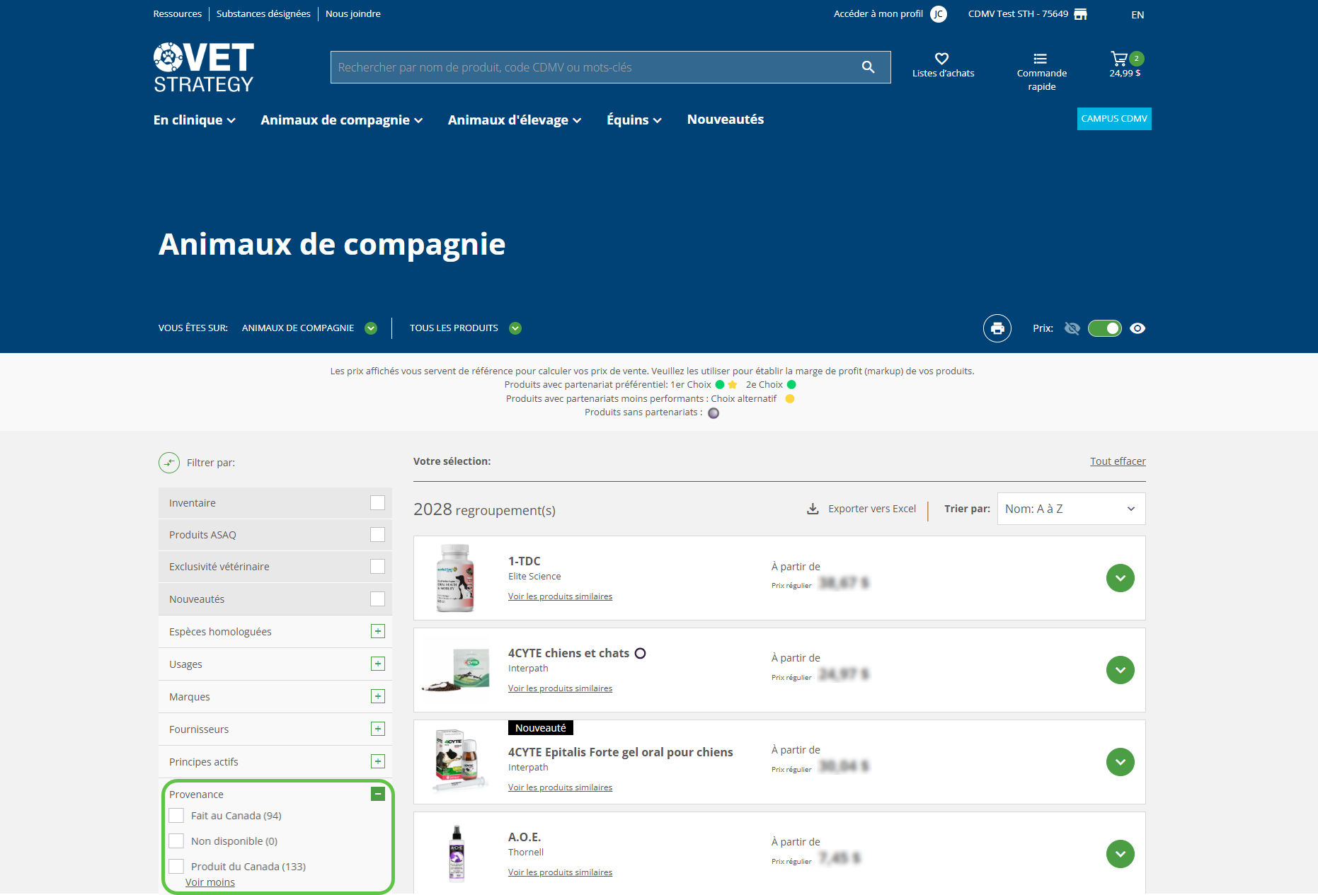 Repérez le filtre «Provenance» pour affiner votre recherche des «Produit du Canada» et «Fait au Canada».