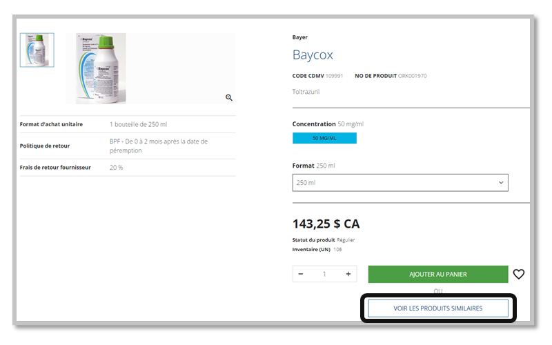 2. Certains produits ne peuvent générer de suggestions de remplacement. Si tel est le cas, le bouton ou le lien ne sera simplement pas visible.