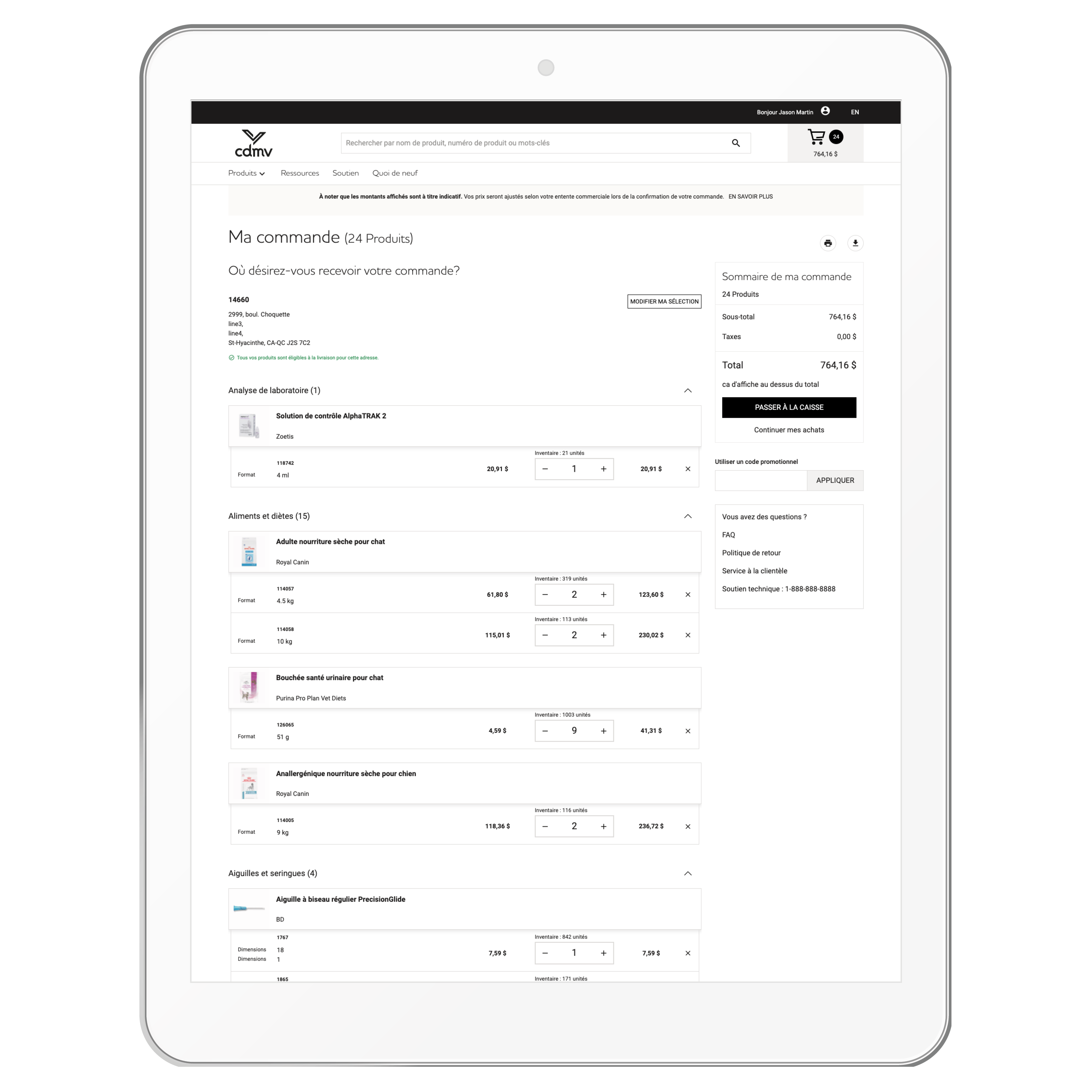 Vous avez trouvé ce que vous cherchiez? C’est le temps de réviser votre panier d’achat. Pour ce faire, cliquez sur l'icône du panier avant de passer la commande. Afin de vous assurer de n’avoir rien oublié, vous pouvez maintenant trier vos items par catégories et modifier les quantités à ce même endroit.